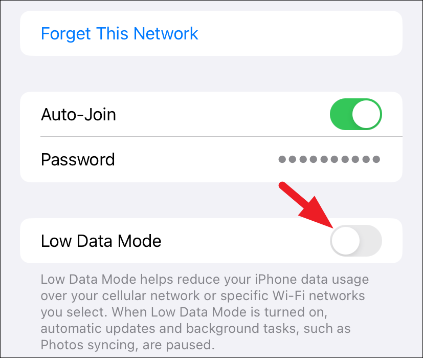 - Then, turn off the toggle for 'Low Data Mode'.
