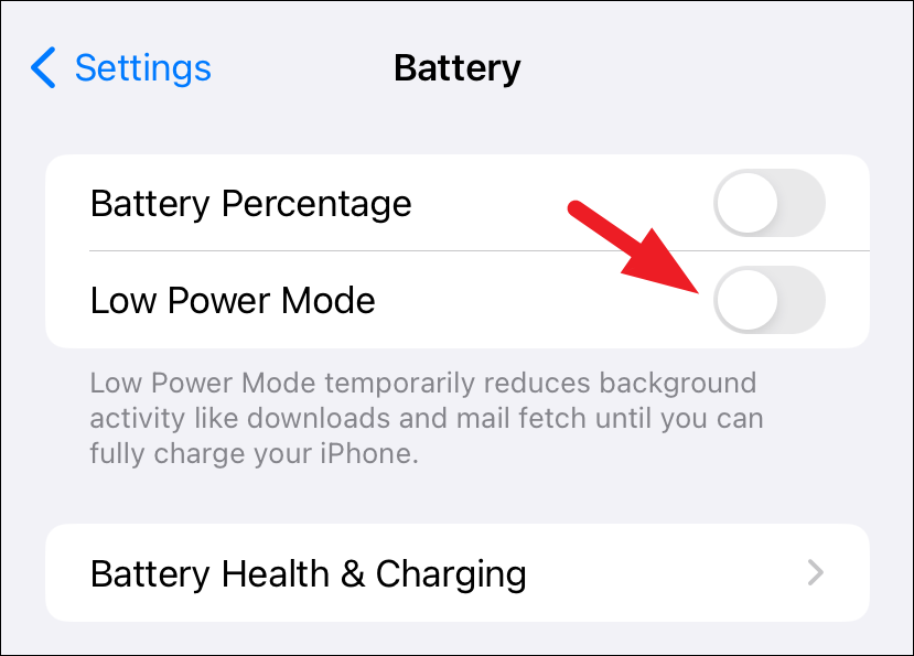 - Turn off the toggle for Low Power Mode'.