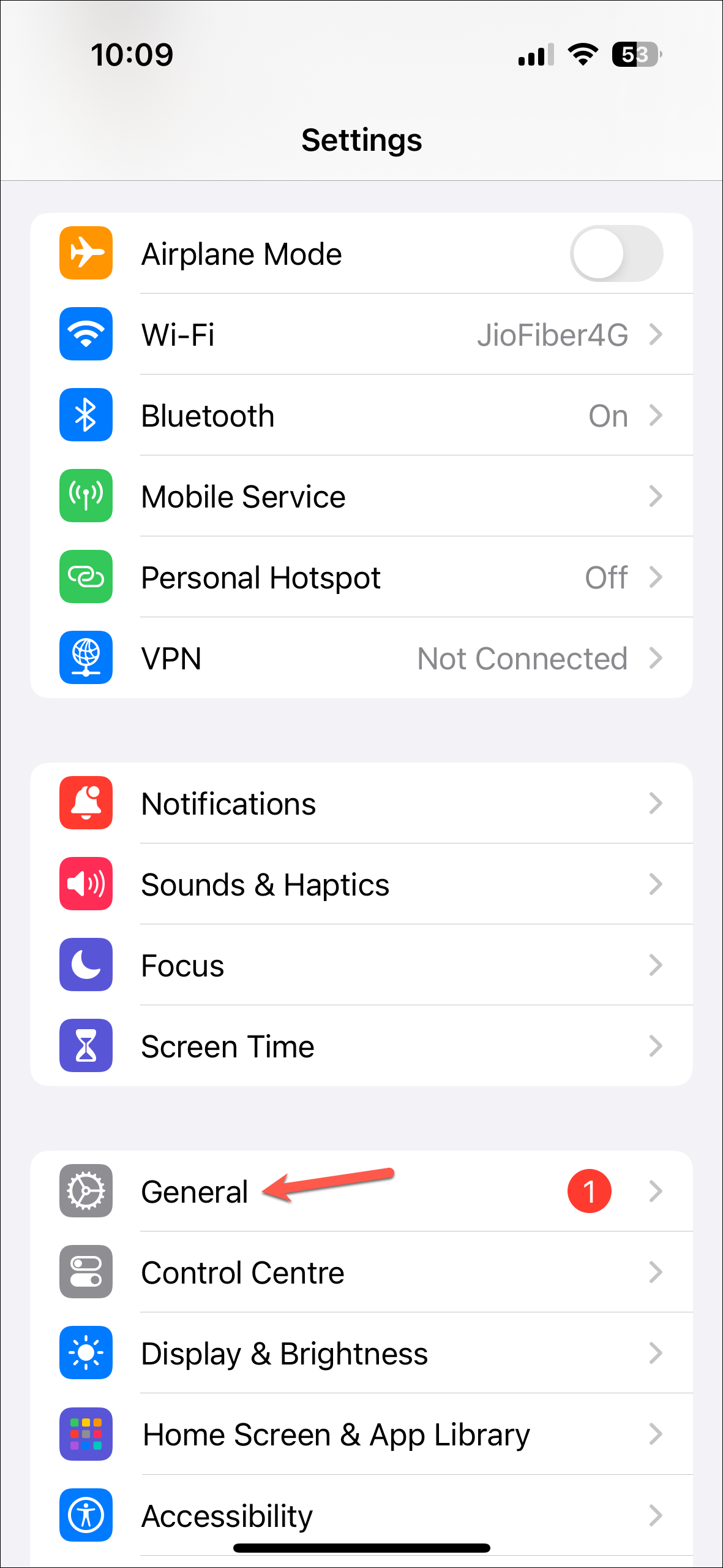 - Open the Settings app on your iPhone. Next, tap on 'General' to proceed.