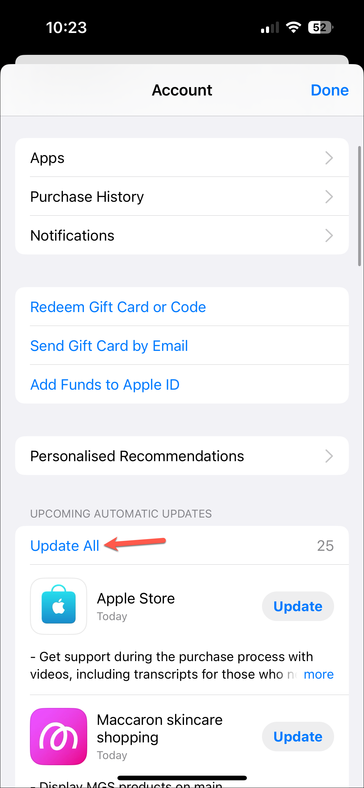 - Tap on 'Update All' to update all the apps that have a newer version available.