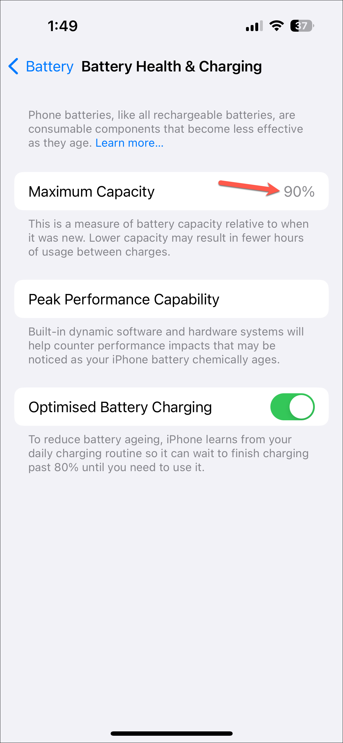 Settings>Battery. - Tap on 'Battery Health & Charging' to proceed.