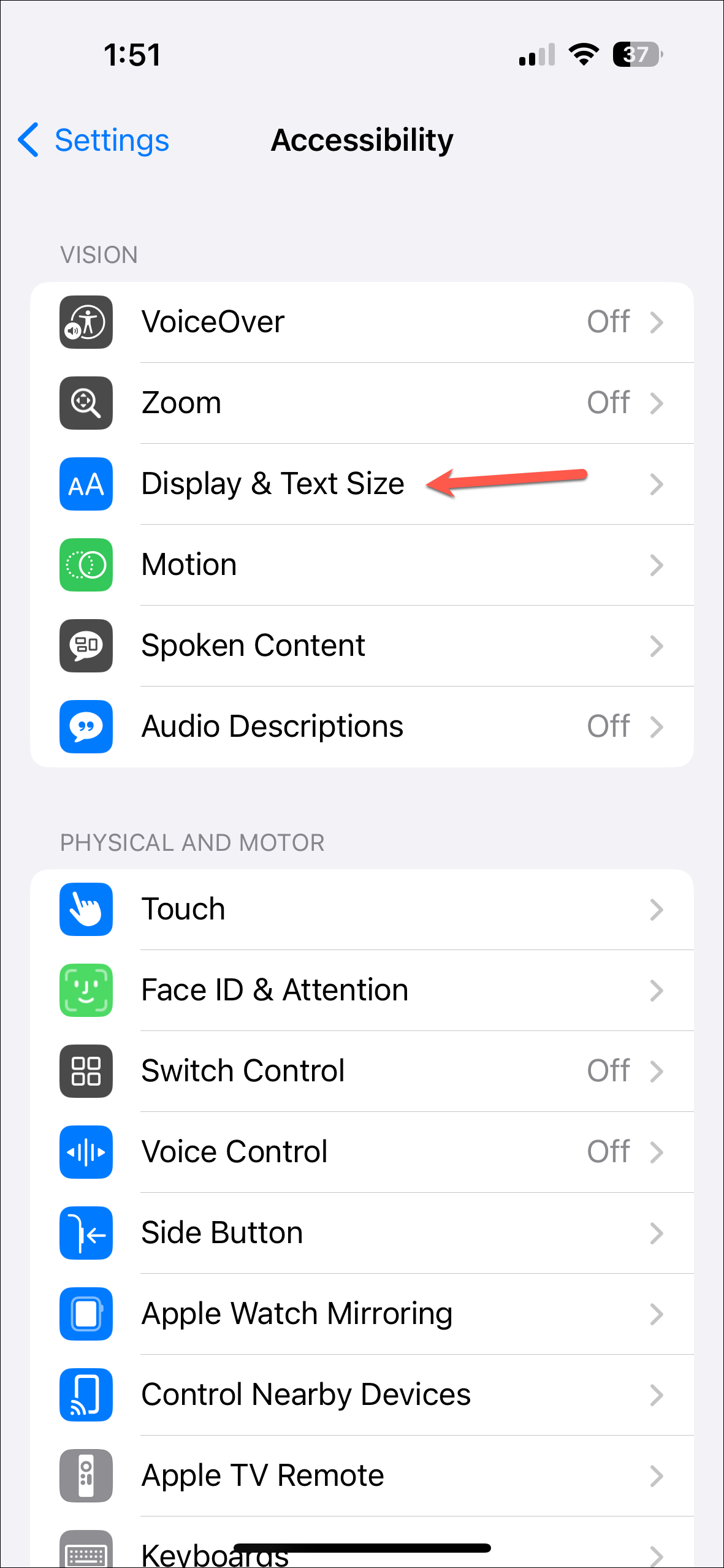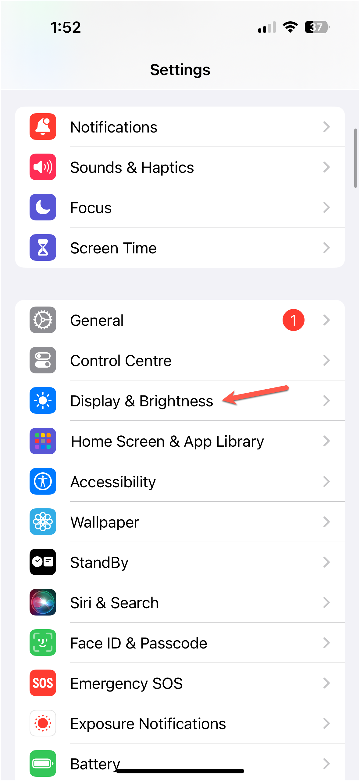 - Launch the Settings app and tap on 'Display & Brightness'.