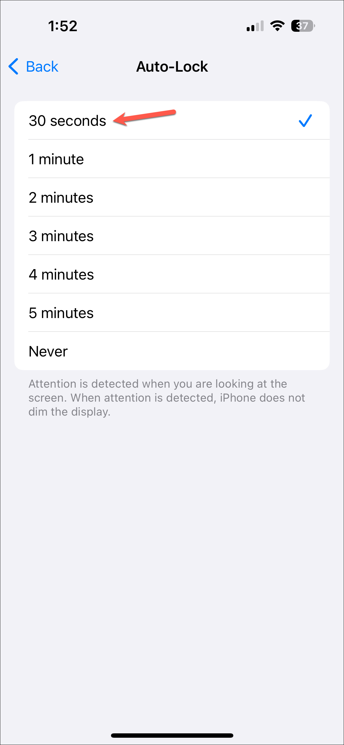 - Choose a duration from the list you want your iPhone to lock when left idle.