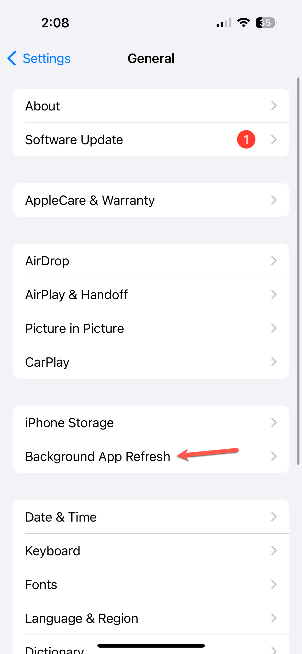 - To turn off the background app refresh for all apps, tap on 'Background App Refresh' to proceed.
