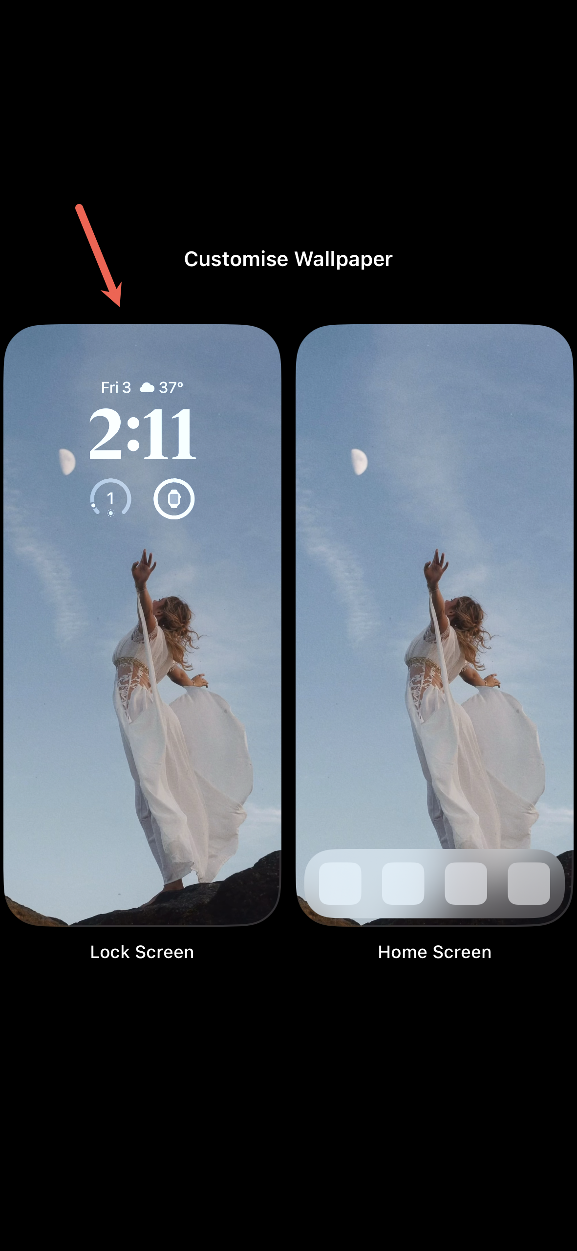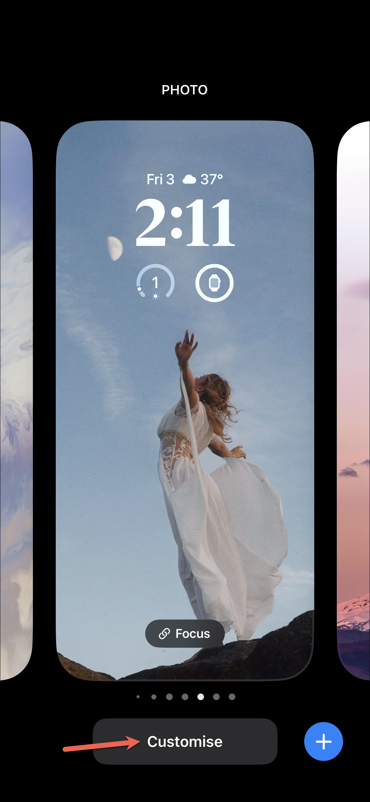 - Tap and hold the lock screen and provide authentication to edit it. Tap on 'Customize'.