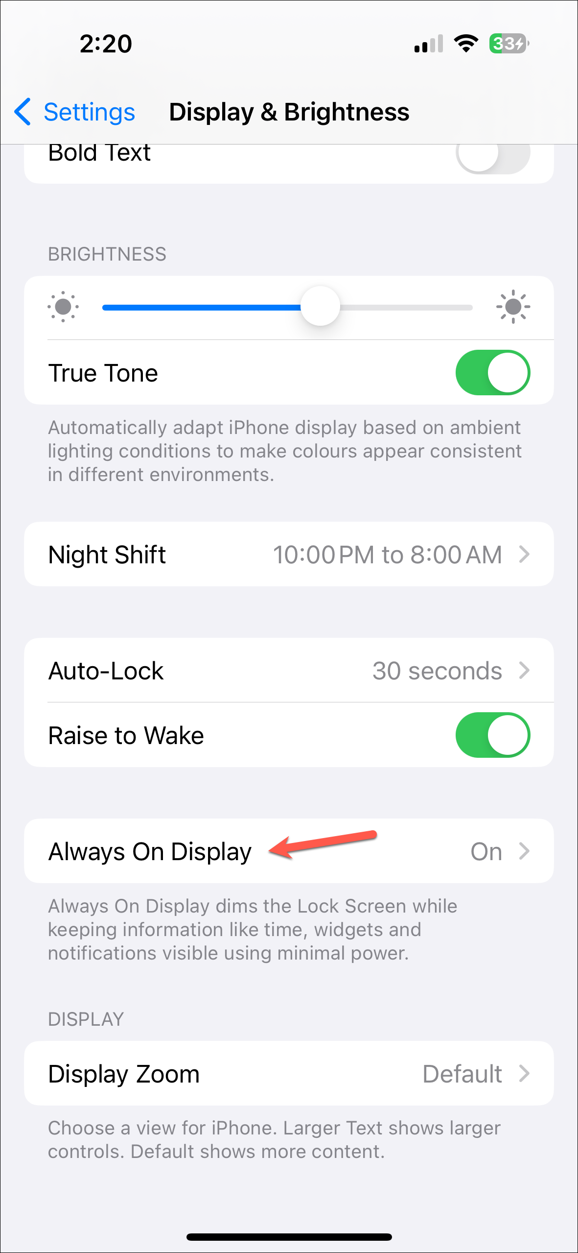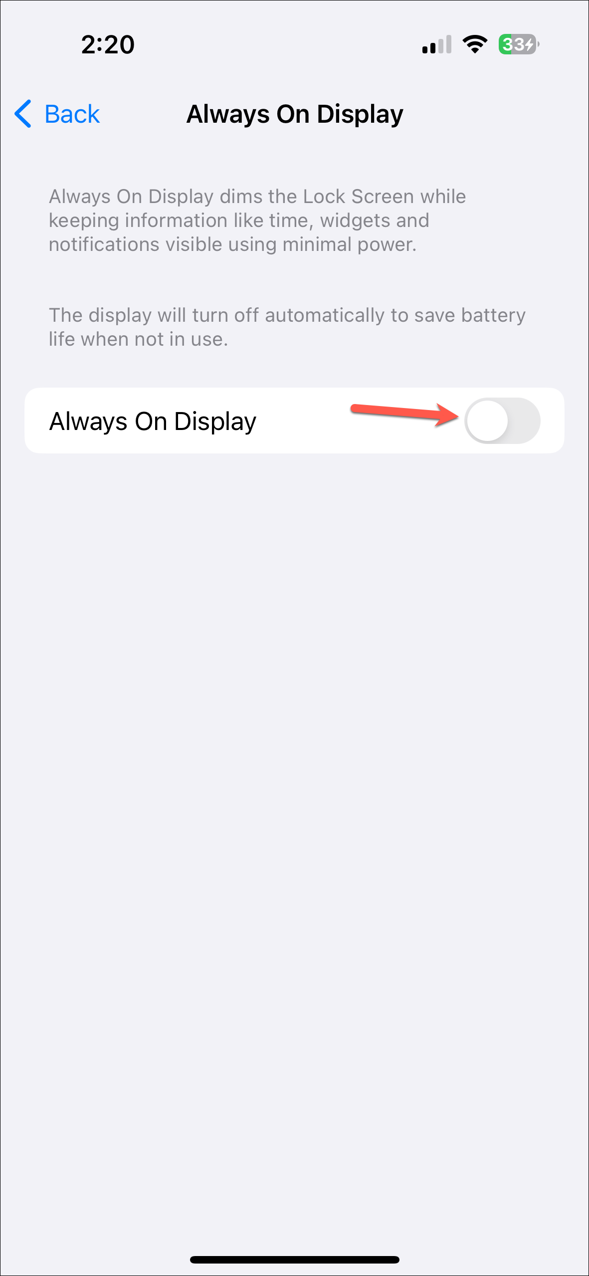 If you own a Pro series iPhone with an Always-On Display, disabling the AOD might help a little. Now, the AOD does not consume as much battery since the refresh rate of your iPhone can drop to as low as 1 Hz. However, if you want to save every last ounce of battery, every little drop in the bucket counts.