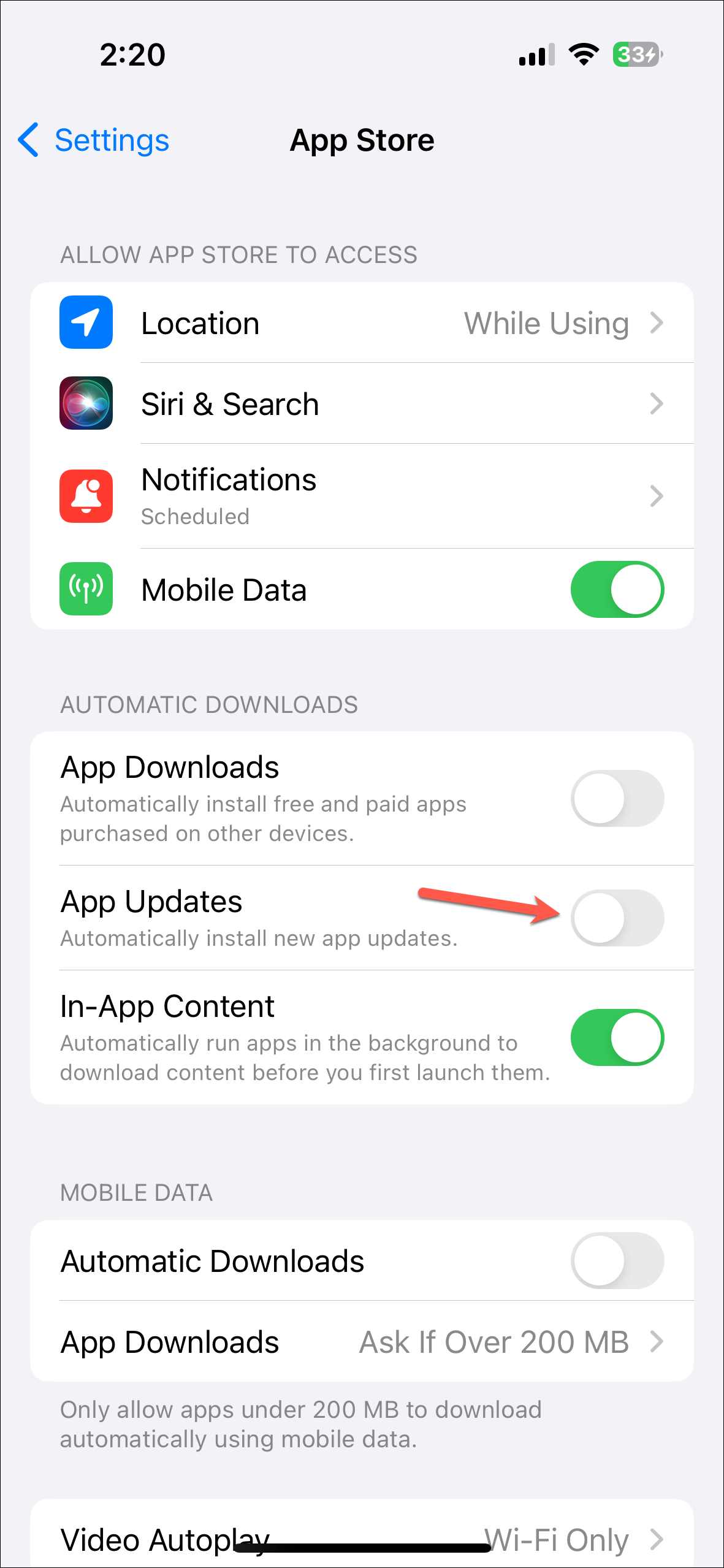 iOS periodically checks for available updates of apps that are installed on your iPhone. This consumes extra data as well as a battery.