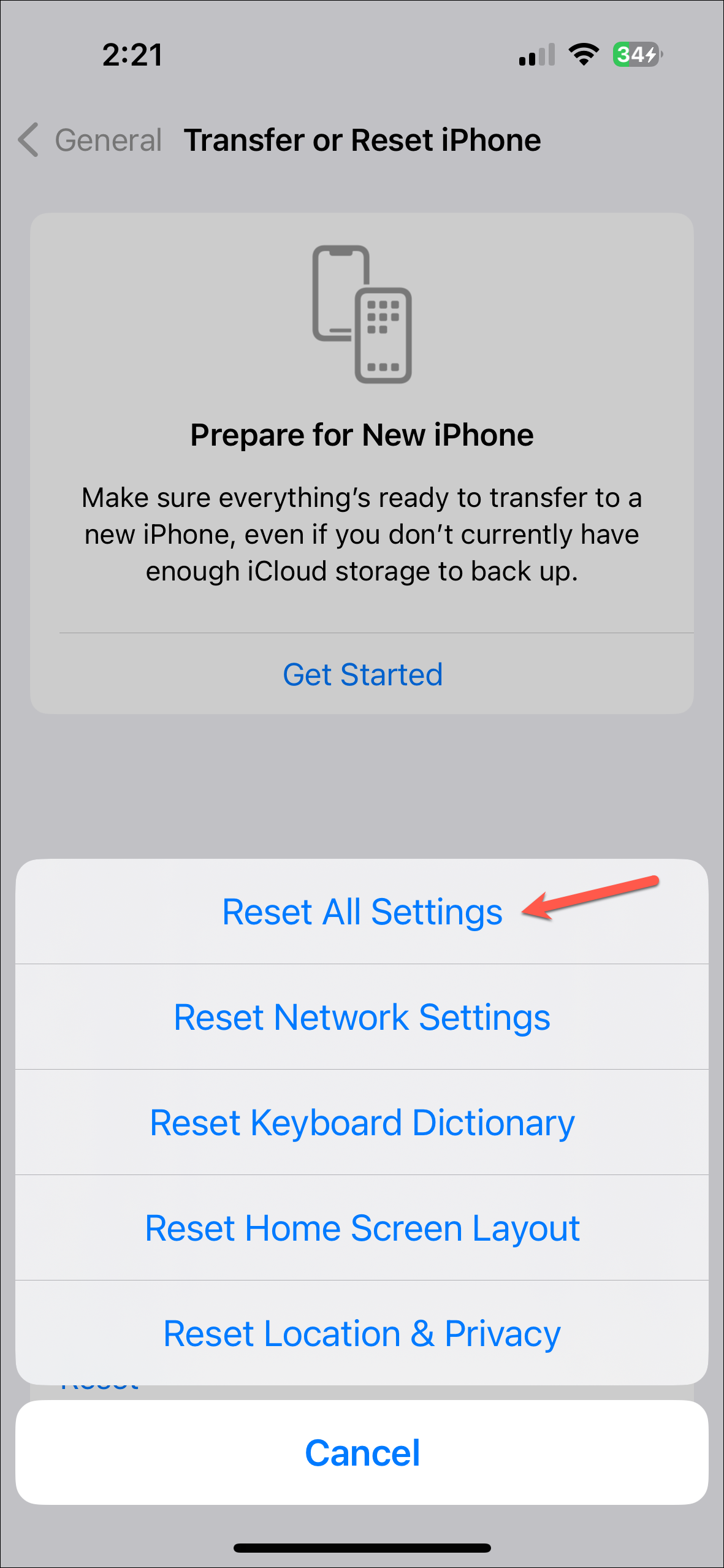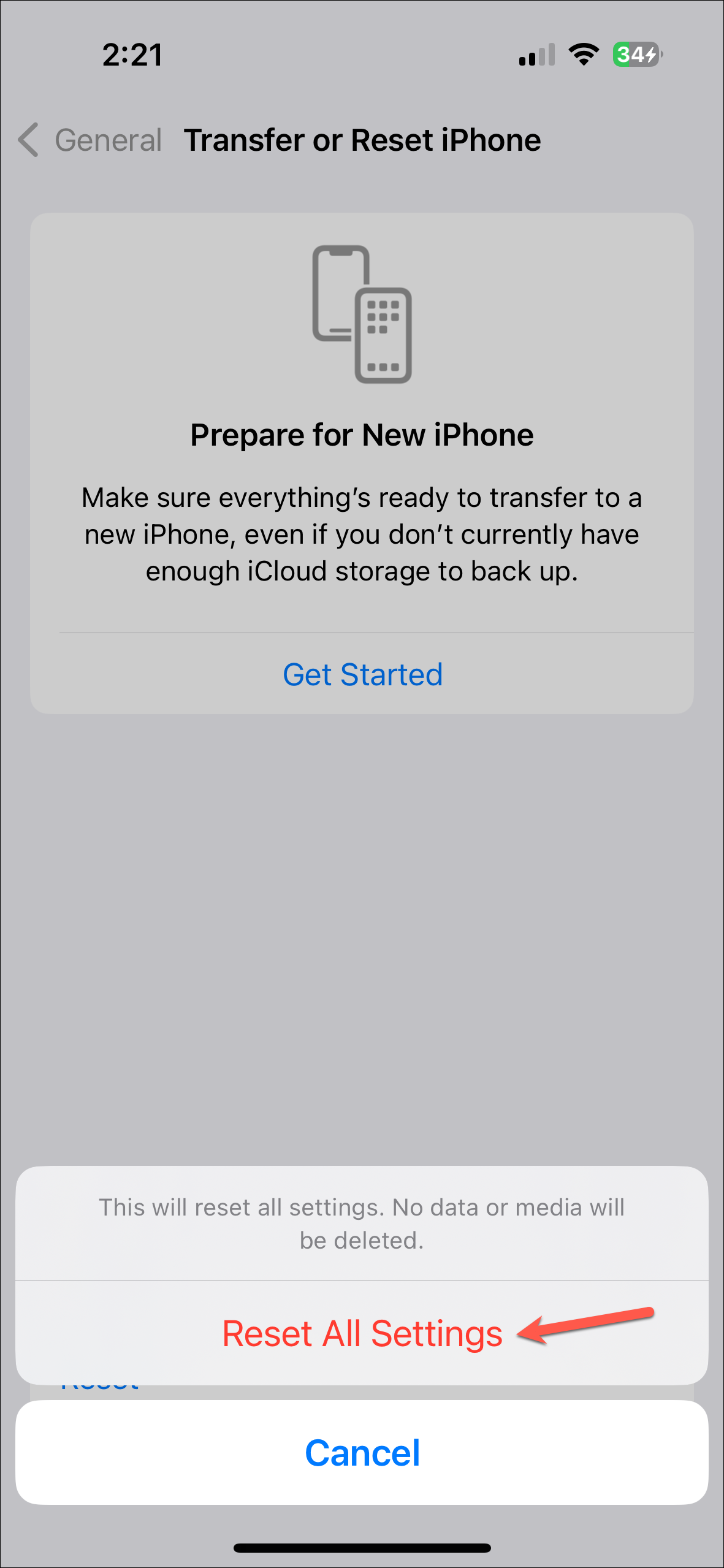 If there is nothing wrong with your iPhone's battery, no app is causing the issue, and none of the above tweaks are helping you prolong the battery life, the last resort is to reset all the settings to factory state on your iPhone. This won't affect your data but you'll need to reconfigure the settings again. However, it can help solve the battery drain issues.