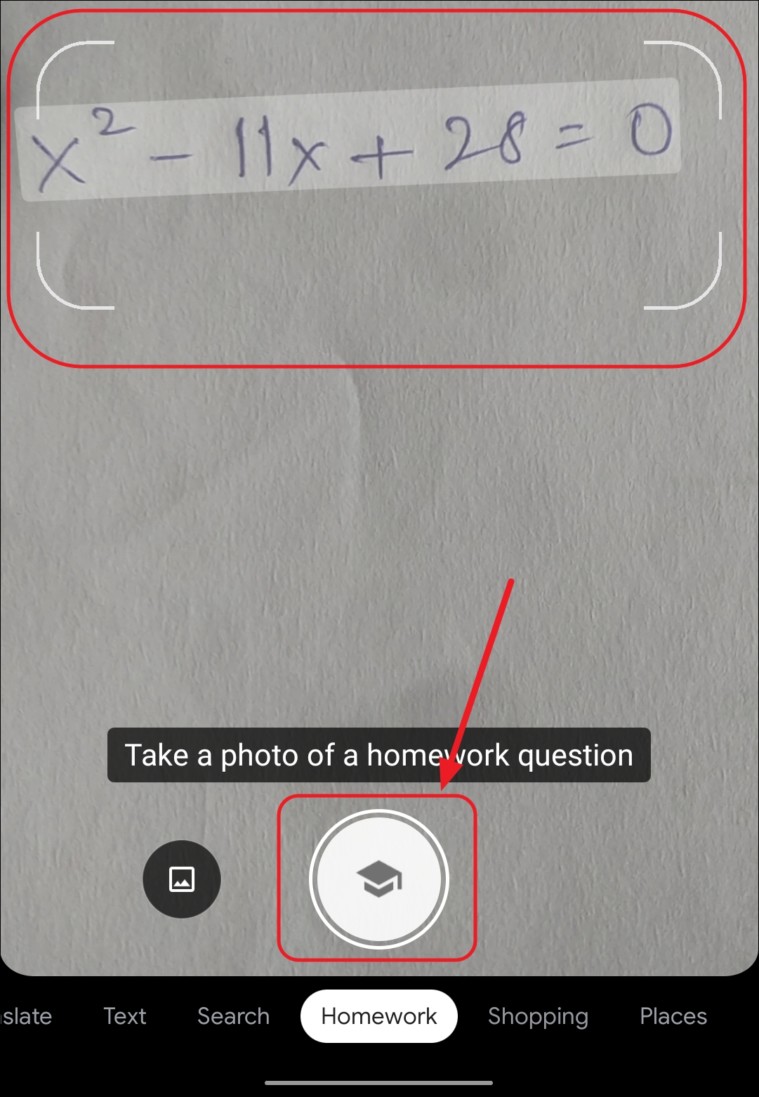 After that, position your math problem in such a way that it is inside the brackets displayed on the screen. Next, click a picture using the ‘Camera’ button.