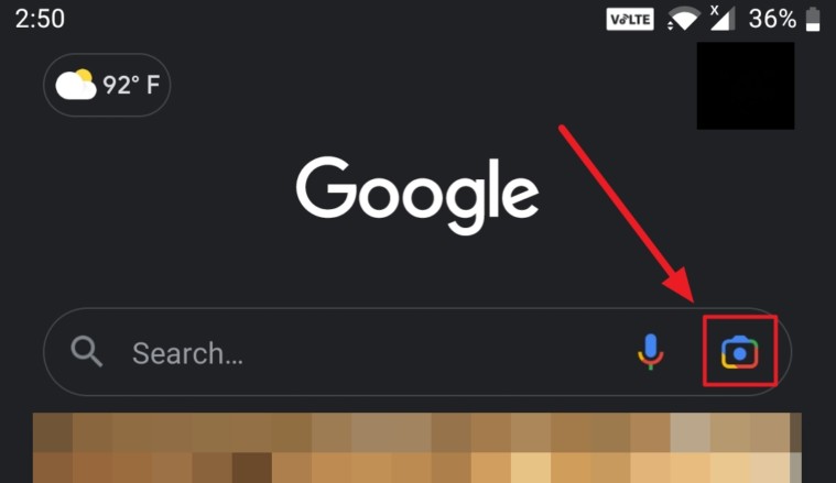 Alternatively, if you don’t want to use Google Assistant or don’t have access to it. You can head to the Google application and tap on the ‘Camera’ icon situated on the right side of the search bar to access ‘Google Lens’.