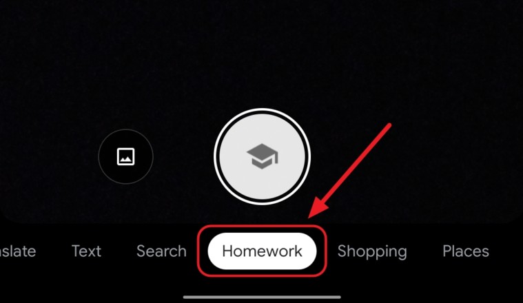 Once Google Lens is open on your device, swipe to the ‘Homework’ tab from the bottom Ribbon.