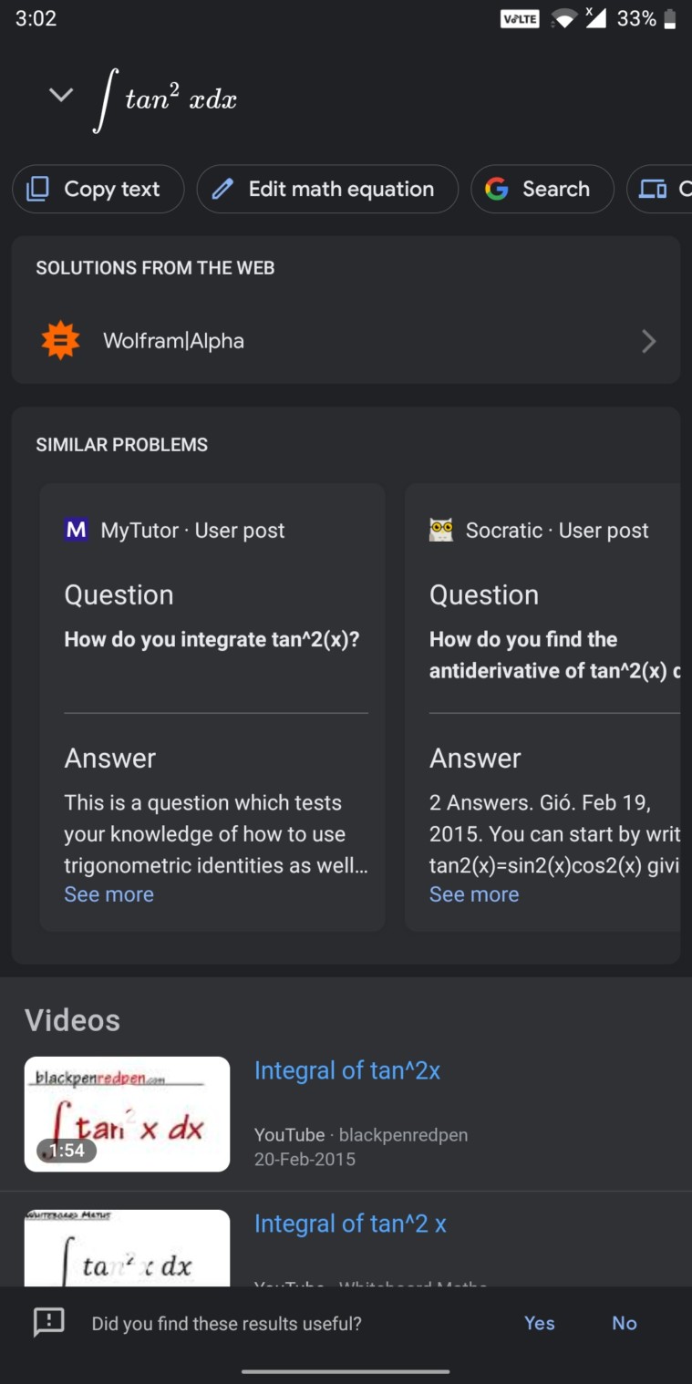 As you can notice in the picture below, Google Lens could not show a direct solution for an integral of tan2x. However, it does provide a link to the solution available on ‘Wolfram|Alpha’. Tap on the website name to jump to the solution.