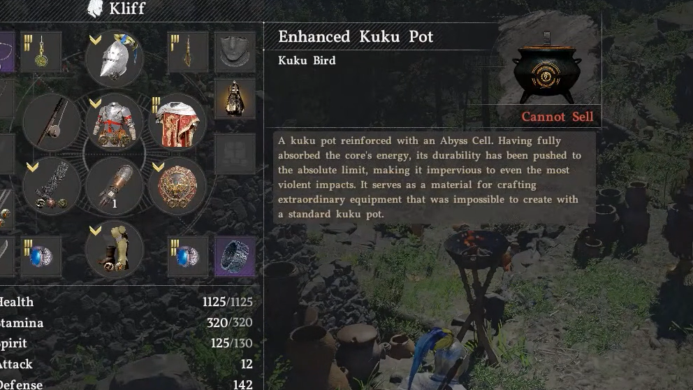Step 1: Return to the broken machine where you repaired the pylon. Open your inventory, examine the Kuku Pot, and discard the Fusion Reactor Core. This drops the core into the open world near your character.