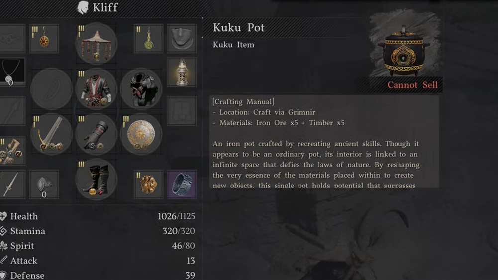 You need the Kuku Pot in your inventory. It is automatically obtained during Chapter 4's main quest "The Iron Pot's Usage." If you have lost it, check the Lost & Found chest at the Howling Hill Greymane Camp or send your comrades on the "Kuku Pot Production" expedition to craft a replacement. Without the Kuku Pot, you cannot transport the Fusion Reactor Core to the machine.