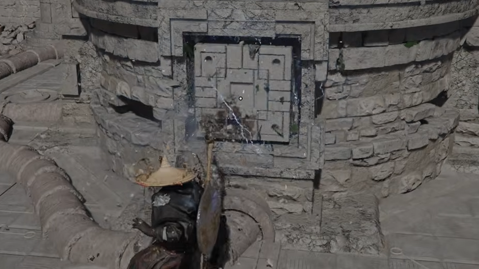 Step 1: Head to the northern side of the Sanctum and enter the main building through its side entrance on the bottom floor. Inside, you will find the dome piece of the broken pylon sitting on the ground.