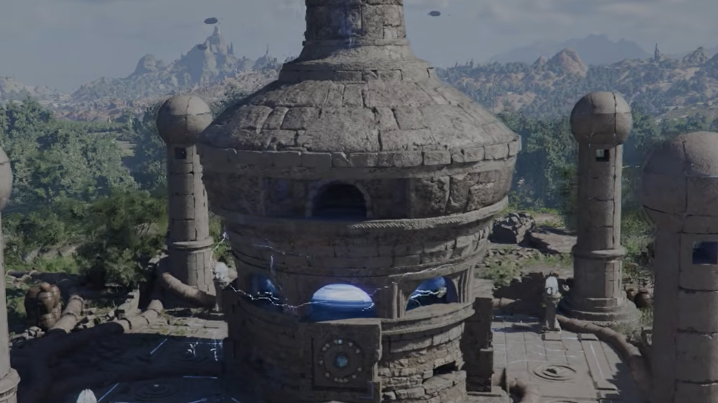 Step 4: Climb to the top of the dome and perform a jumping Force Palm (jump, then press R3 on PlayStation, Right Stick on Xbox, or Mouse Wheel on PC). The dome will lock into the pylon and become electrified, restoring the first half of the machine.