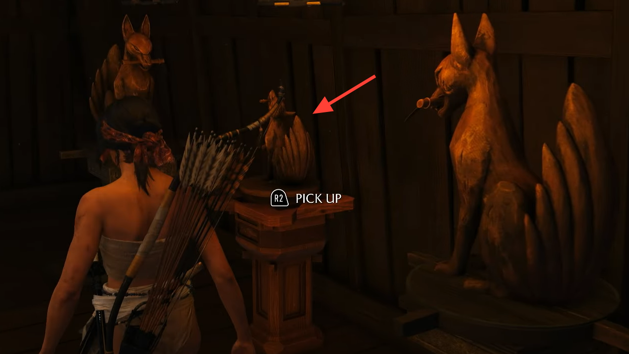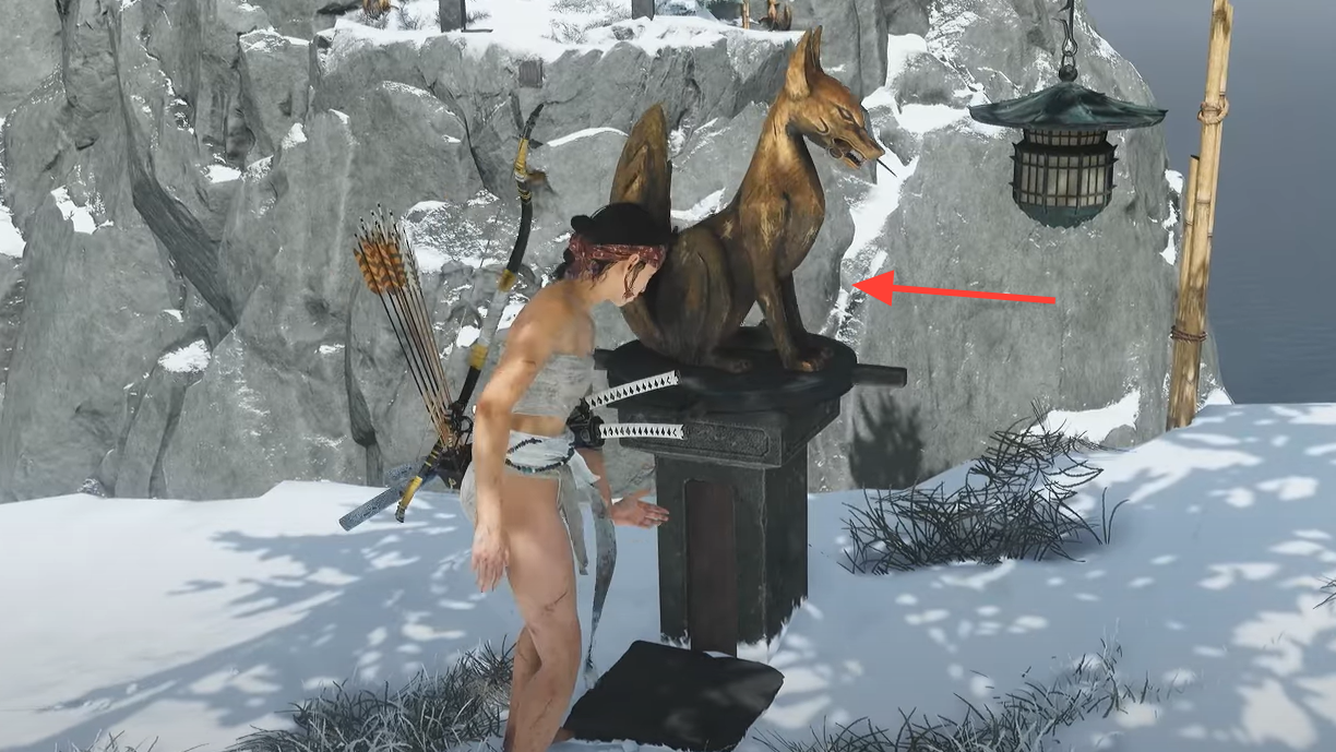 Head to Shipwreck Shoal on the northeastern edge of Teshio Ridge. You’ll see an inaccessible building across a gap and, near you, two wooden kitsune statues that rotate. This opening puzzle creates a crossing and then unlocks the door.