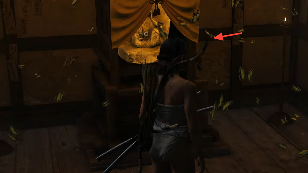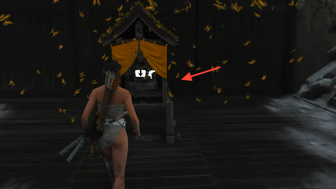 - A deer will then guide you toward the exit route. Climb the nearby scaffolding to reach another Altar of Reflection at the top, pay respects to unlock a technique, and leave through the door behind the altar.