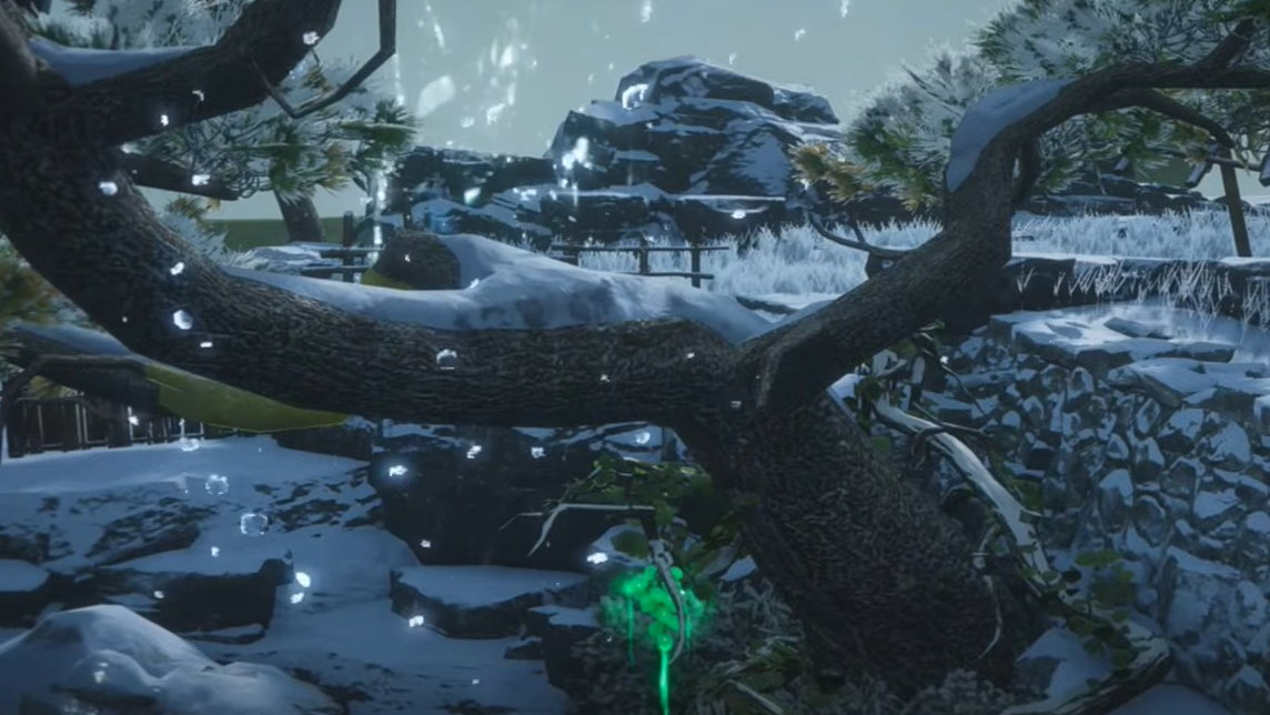Step 2: Move your character around the area until the moon sits directly on or behind the branch from your camera's perspective. You'll know you're close when the colors of the moon and the branch appear to blend or match visually.
