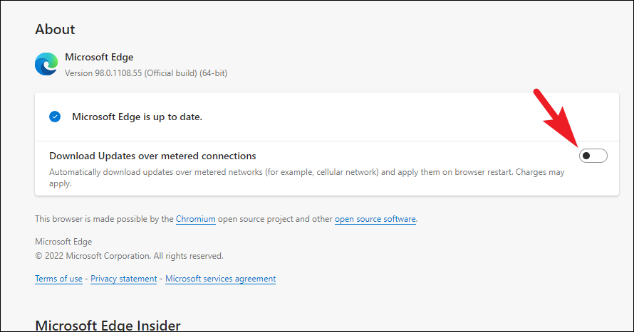 Step 3: If updates are not downloading due to metered connection settings, toggle on Download Updates over metered connections.