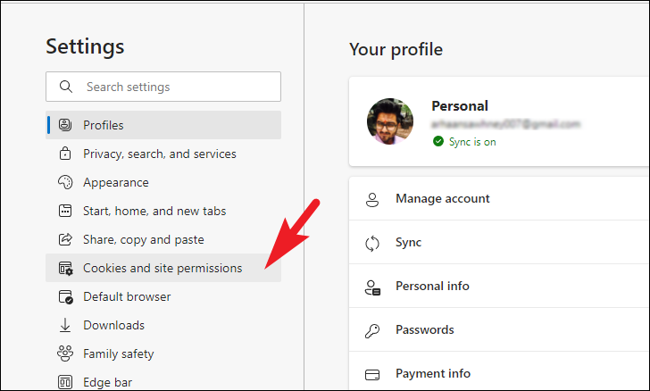 Step 2: Click on Cookies and site permissions in the sidebar.