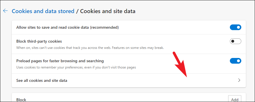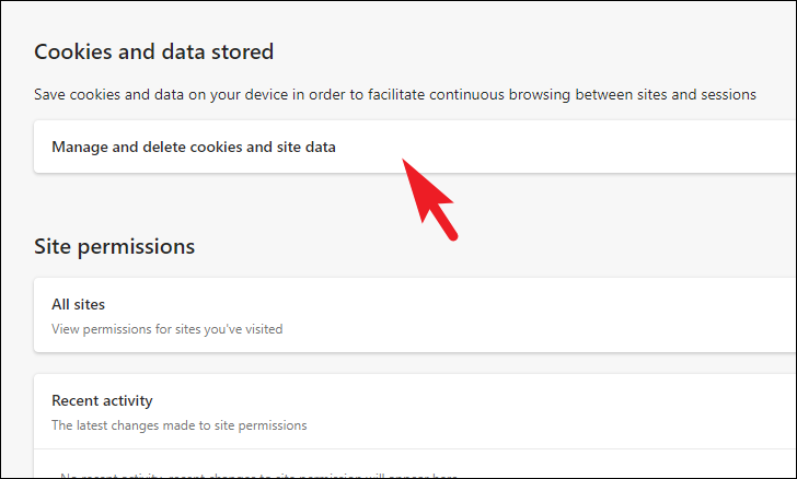 Step 3: Under Cookies and data stored, click on Manage and delete cookies and site data.