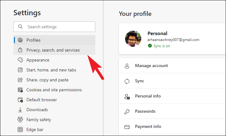 Step 2: Click on Privacy, search, and services in the sidebar.