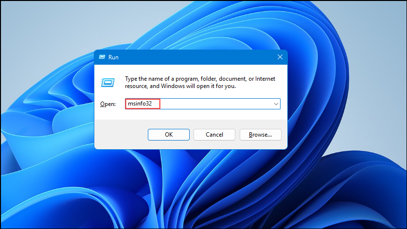 Win + Rshortcut to open the 'Run' dialog and typemsinfoinside it before pressing Enter.