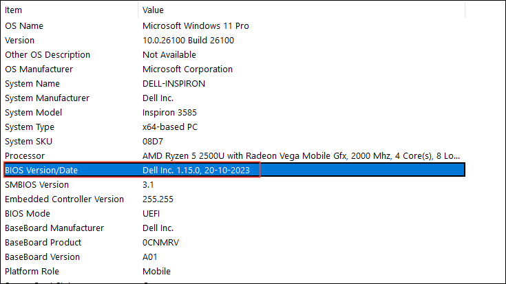 - This will bring up the System Information window. Check the BIOS Version/Date.
