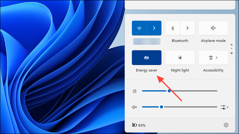 - Then click on the 'Energy Saver' toggle in the pop-up menu to toggle it on.