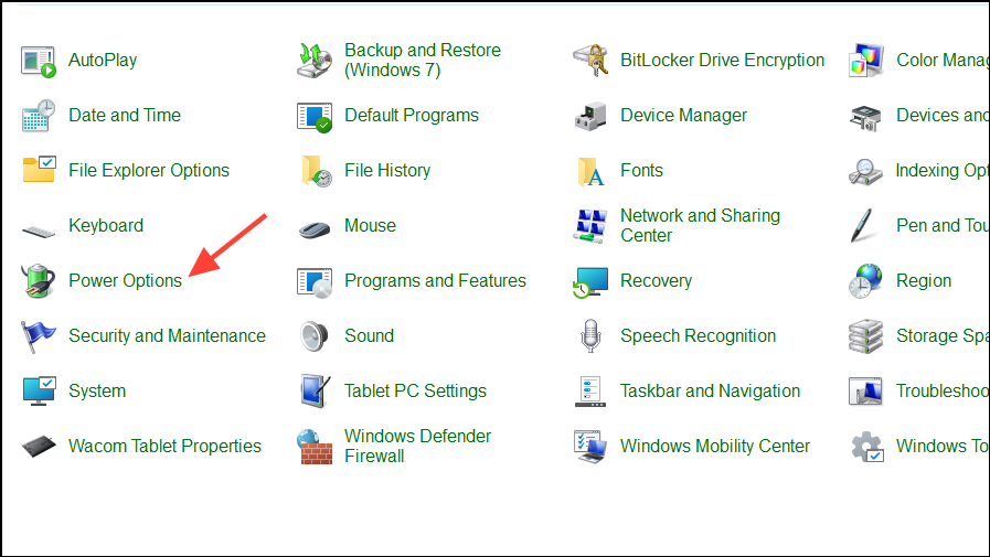 - Open the Control Panel and click on 'Power Options'.