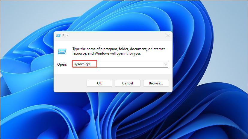 Win + Rshortcut to open the 'Run' dialog, then typesysdm.cplin it and press Enter.
