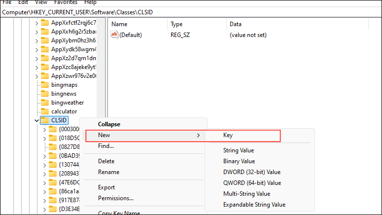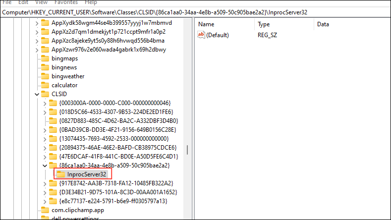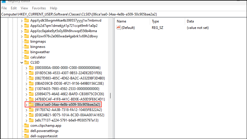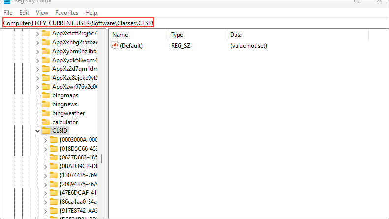Computer\HKEY_CURRENT_USER\SOFTWARE\CLASSES\CLSID\