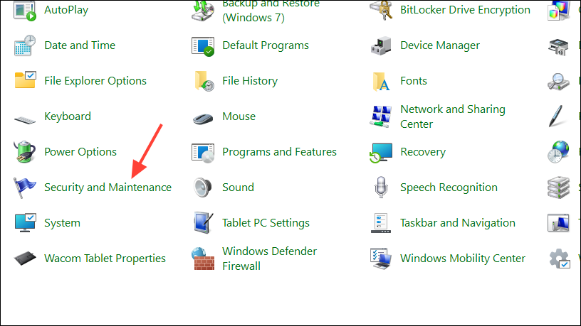 - Open the Control Panel and click on 'Security and Maintenance'.