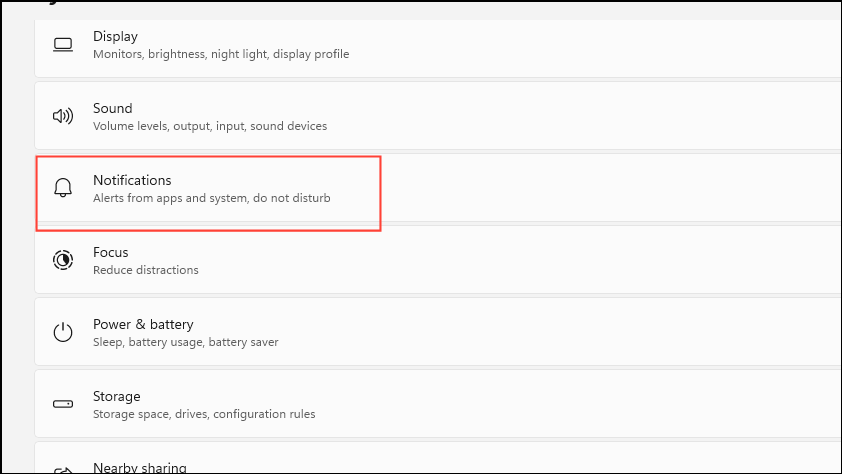 - On the System page, click on 'Notifications'.
