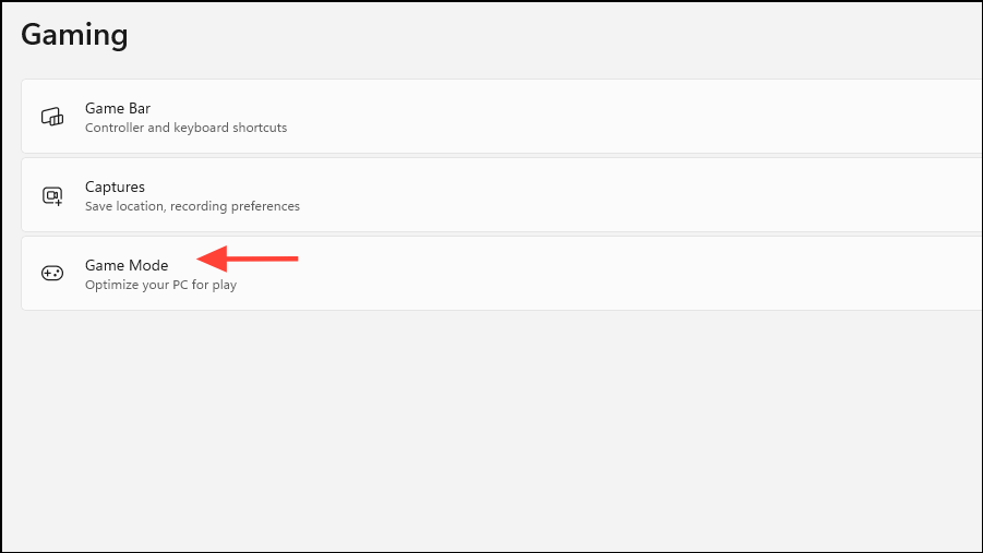 - Next, click on 'Game Mode' on the Gaming page.