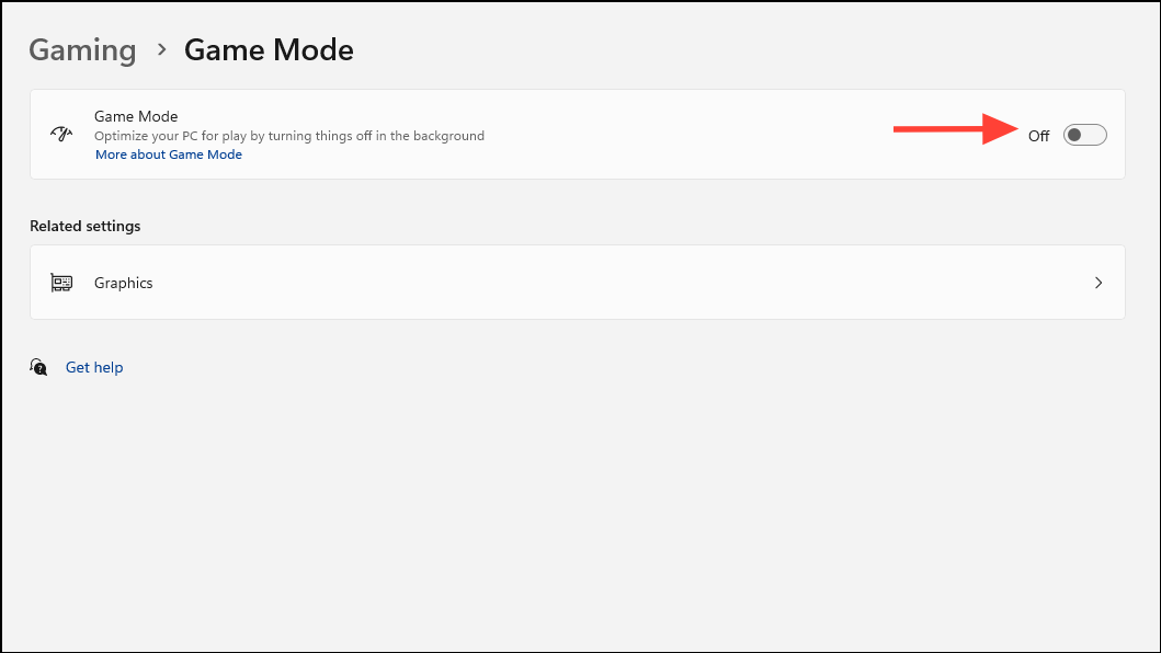 - Finally, click on the toggle next to the Game Mode option to turn it off.