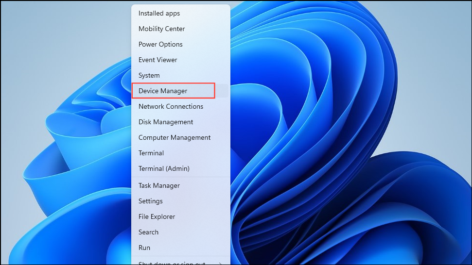 - Right-click on the Start button and then click on 'Device Manager'.