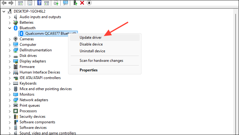- Then, right-click on the driver and click on 'Update device'.
