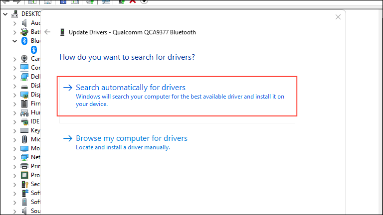 - Then click on 'Search automatically for drivers' and wait until Windows searches online for a new driver for the device.