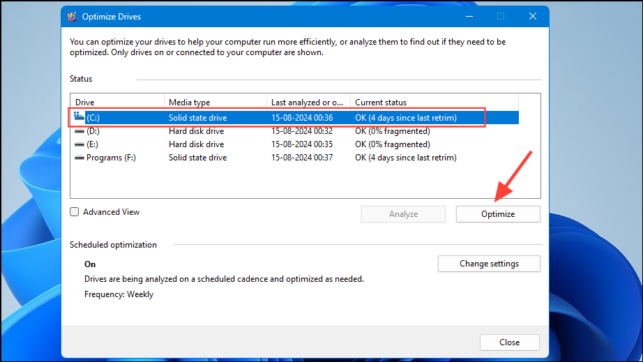 Over time as you continue using your PC, your files get scattered and fragmented, slowing down Windows. While Windows 11 automatically defragments them, you can also try doing so manually to speed up your PC.