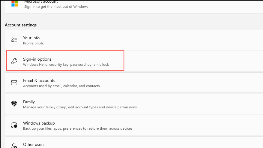 - Click on the 'Sign-in Options'.