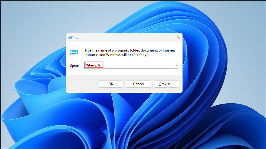 Win + Rshortcut to open the run dialog, then type%temp%and press Enter.
