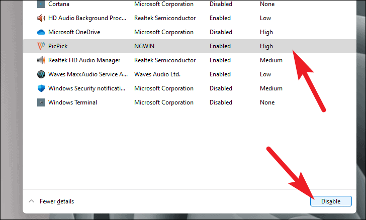 Focus on disabling programs with a "High" startup impact for the most noticeable improvement.