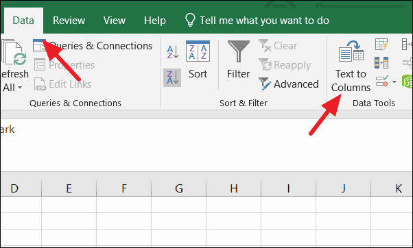 Step 2: Navigate to the Data tab and click on the Text to Columns button in the Data Tools group.