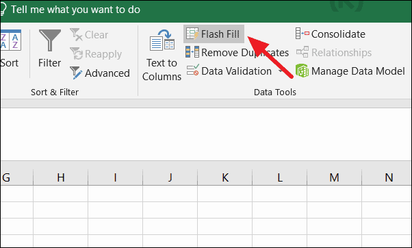 Step 2: With the cell containing your example selected, go to the Data tab on the Excel ribbon. Click on the Flash Fill button in the Data Tools group.