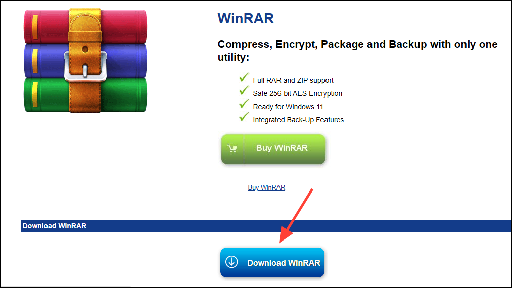 - Visit the official WinRAR website and click on the blue 'Download' button to download the tool.