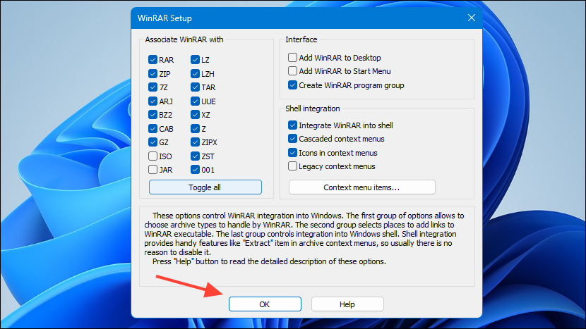 - Once the file is downloaded, install WinRAR on your Windows computer. After the installation is complete, leave the default options checked and click on the 'OK' button before clicking on 'Done'.