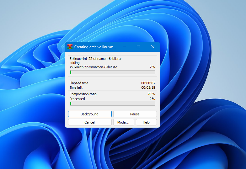 - Depending on the size of the file, the process can take some time to complete. WinRAR will name the smaller archives Part 1, Part 2, etc.