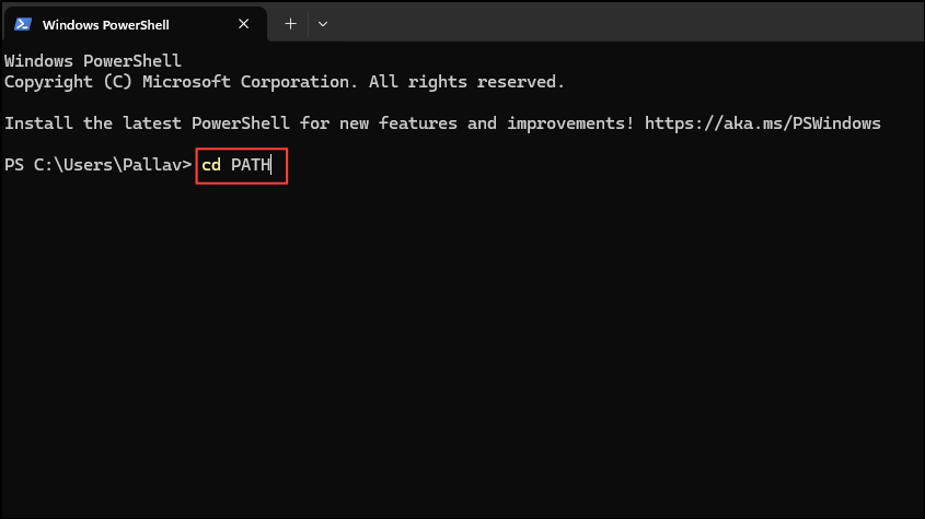- In the PowerShell window, type